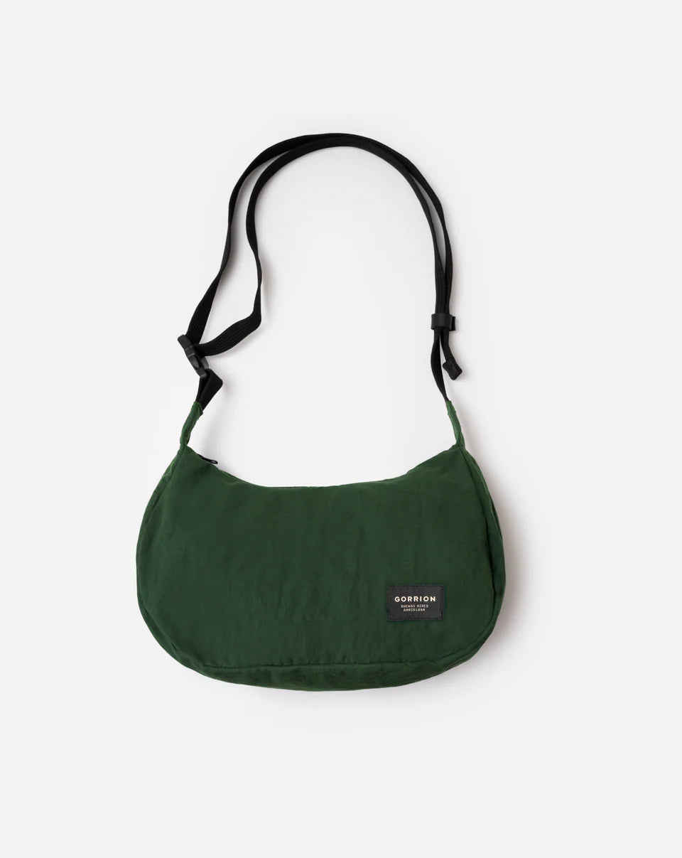 Printed microfiber lining. Features an open interior pocket (no zipper).